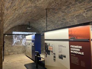 La deuxième salle est entièrement consacrée au passage de Napoléon au retour de l’île d’Elbe. Jour après jour, heure par heure, la triomphale épopée nous est contée, depuis le débarquement à Golfe-Juan, le 1er mars 1815, jusqu’à l’arrivée à Lyon, le 10 mars. La Provence, royaliste, est hostile à l’empereur et la Citadelle de Sisteron est forte de ses 23 canons. Tout peut s’arrêter là et pourtant , au matin du 5 mars 1815, la Citadelle est sans poudre, Cambronne et ses 40 grenadiers occupent la ville, l’empereur peut y entrer… »